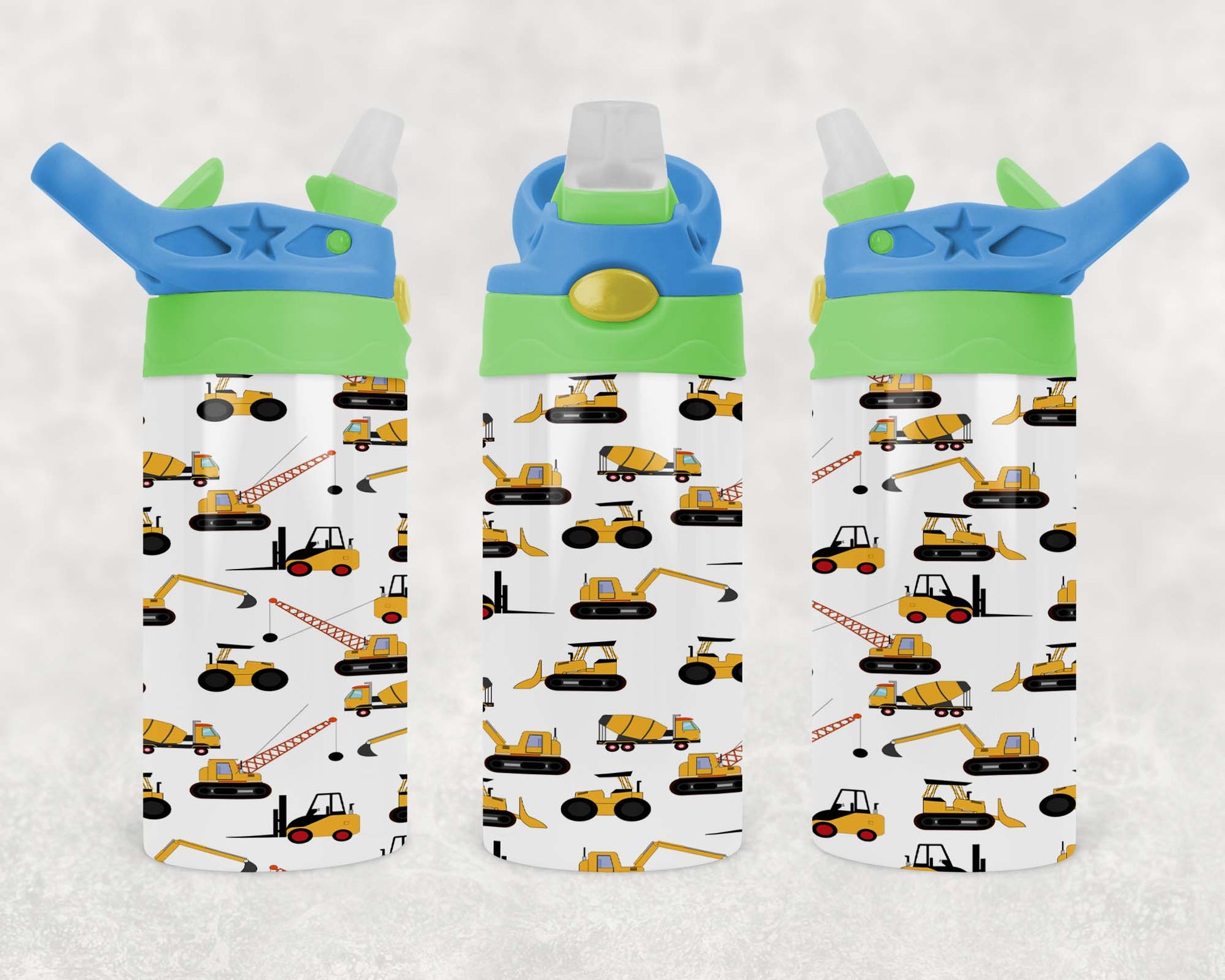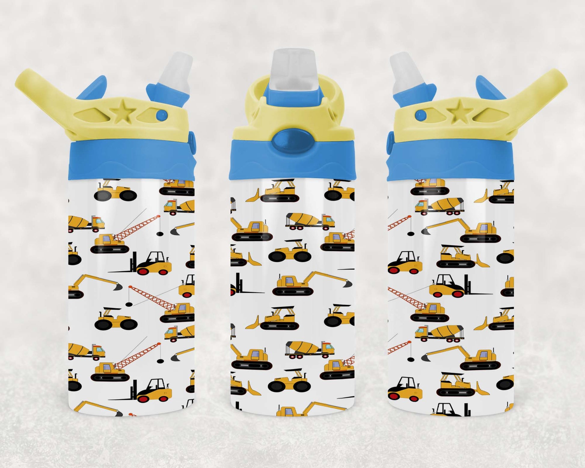 Construction Trucks - Children's Tumbler, Kid's Water Bottle, Water Bottle, Toddler, Stainless Steel Tumbler, Pop-Top